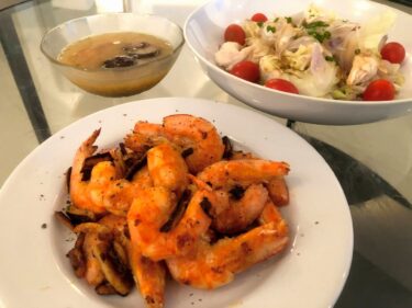 夜ごはん、昨夜に引き続き海老ちゃん!